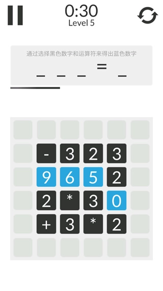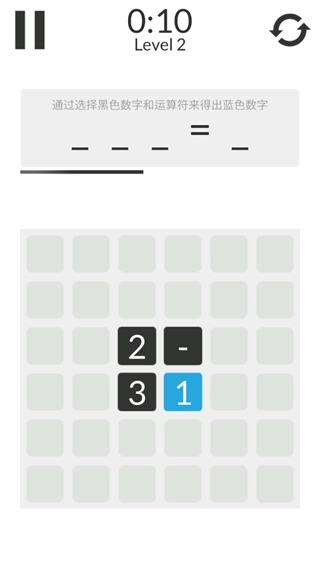 2、关卡里有黑色和蓝色的数字及符号方块,玩家要把黑色方块组合起来,并且顺利算出蓝色数字。