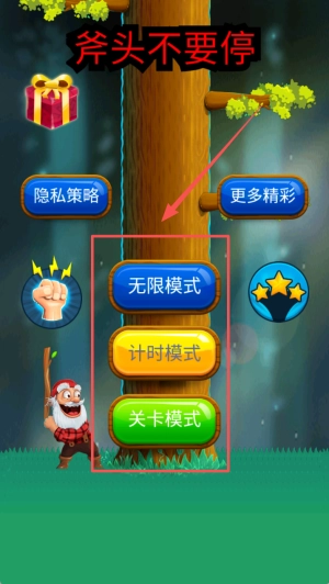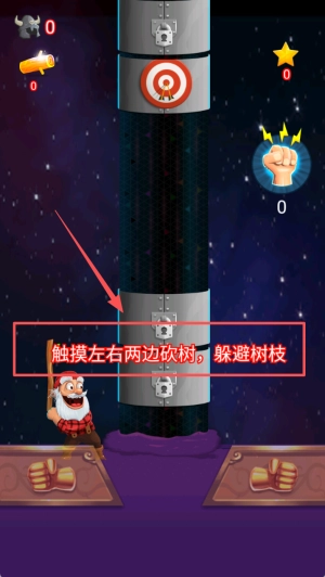 选定模式后,点击下方的左右按键操控角色移动,避开树枝之类的障碍,与此同时不断挥砍树木,尽力达成砍伐任务。