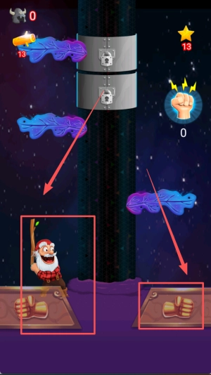 沿途收集星星,不断提高人物的属性与斧头等级。