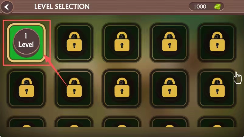 在关卡选择界面,带有数字1标识的绿色关卡是初始关卡,点击该关卡就能开启第一阶段的生存挑战。