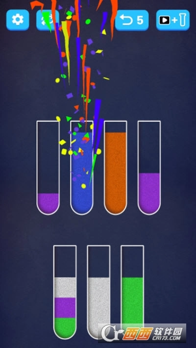 这样才可以将不同颜色的沙子去进行分类,这样就可以顺利的通过所有的关卡。