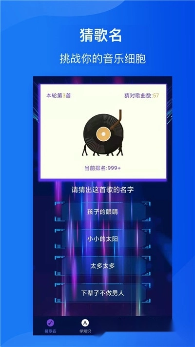 全民猜歌达人是一款非常好玩的手机猜歌闯关小游戏,在全民猜歌达人游戏中有着非常多的我们耳熟能详的歌曲,是一款非常有趣的适合用来打发时间的休闲解压小游戏,感兴趣的朋友赶紧全民猜歌达人开始游戏吧!