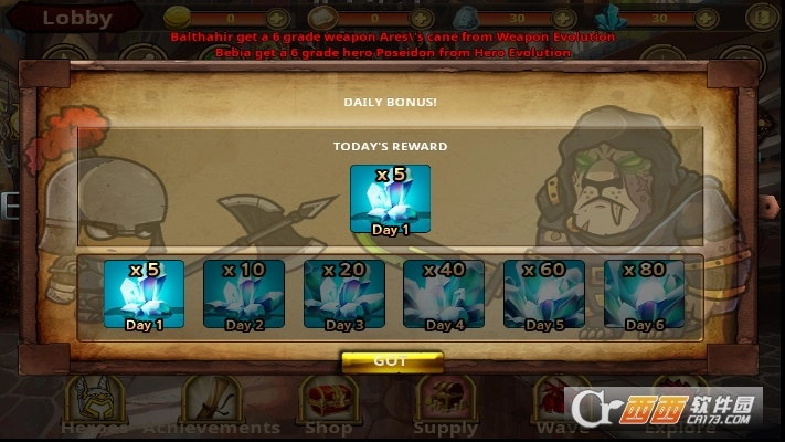 *各种各样的英雄和装备可供选择。