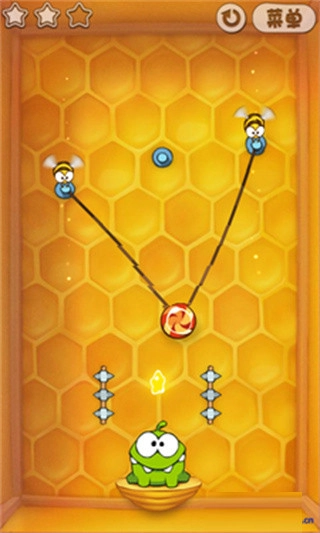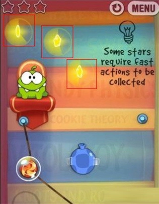 6、有时候需要迅速移动来使糖果摇摆幅度变大,用来获得一些星星还能把绳子拉紧。