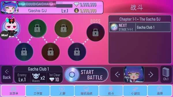 启动扭蛋俱乐部后,界面右下角会出现语言选项,选择简体中文并轻点屏幕中央,即可正式迈入这个萌系世界。