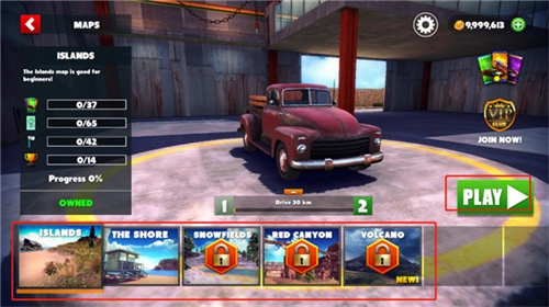 进入游戏后,玩家先挑选一个想挑战的场景,接着点击画面右下角的play按钮就能开启挑战。