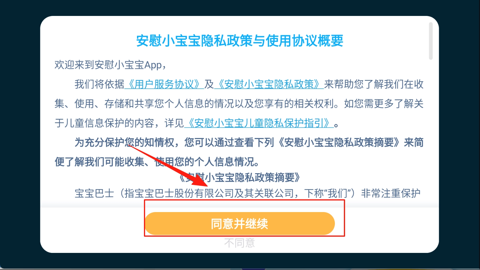 然后安装并打开,用来安慰小宝宝,阅读相关协议后自行决定是否同意。