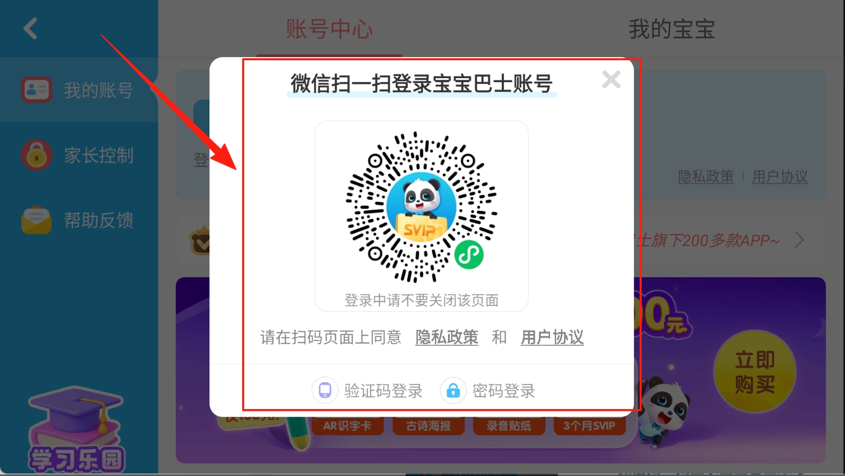 选择登录方式登录。