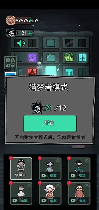 进入方式:当猎梦者模式解锁后,在游戏首页点击一楼左侧的窗户,就能进入猎梦者模式了。