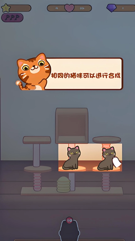 2、相同的猫咪能够进行合成操作,合成完成后就可以解锁新的小动物。