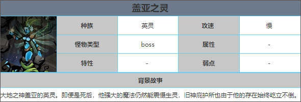 2、从属性面板分析,盖亚之灵的强度确实如其外表般温和无害。它仅拥有较高的生命值,其他方面的强度与150守门相差无几。
