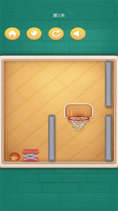 2、屏幕上会呈现篮球与弹跳板,按照指引点击篮球完成蓄力,调整好方向后发射,只要能成功把球投进篮筐就算通关。