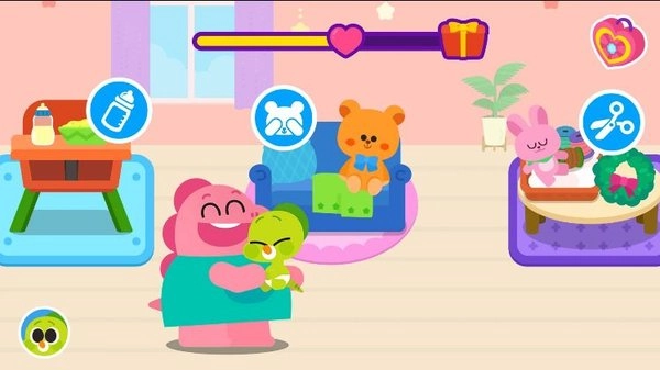 1、柔和的色彩与Q萌的角色建模相互搭配,共同营造出温馨舒适的育儿氛围。