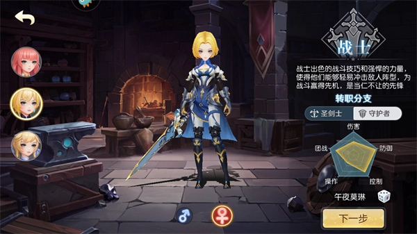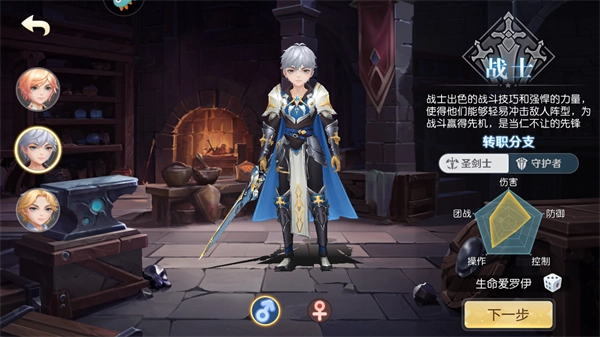 3、接下来要介绍的是战士职业,它分为圣剑士和守护者两个分支。圣剑士是正义的代表,从不屑于运用控制类技能,不过在其他各项能力上都有着不俗的表现。要是玩家不想费心操作控制技能,只想专注于战斗本身,那么选择转职为圣剑士会是个很好的决定。
