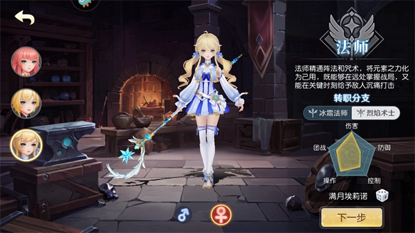 5、最后一个职业是几乎所有游戏里都能见到的“法爷”——法师,它有冰霜法师和烈焰术士两个转职分支。冰系法师的控制能力毋庸置疑是拉满的,各类暴风雪技能在团战中表现出色,完全能担当团本的输出核心。