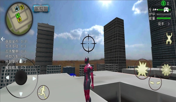 2、解锁各类超级英雄形态,每种形态都具备独特的绳索技能和战斗特效,像电击绳索、爆破蛛网之类的效果都包含其中。