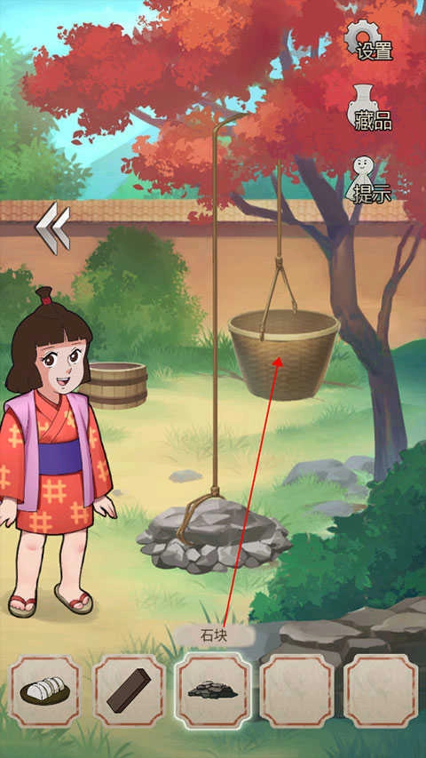 10、石头升起后,用木桶去接触井口,就能获得装满水的水桶。