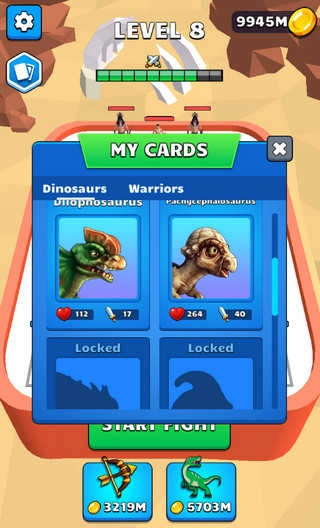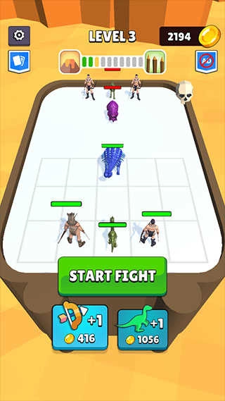 3、界面下方设有射手和恐龙的选择项,可消耗金币来购买恐龙或射手,点击“START FIGHT”按钮即可开启挑战。
