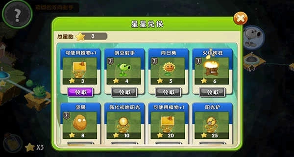 通关关卡能积累星星,当星星数量达到规定要求时,就可以在星系商店里兑换相应的植物或者它的碎片。