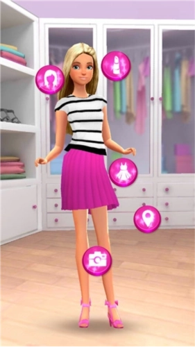 1、角色:在芭比时尚衣橱帮助时尚的Barbie、Nikki、Rene、Teresa和她们的朋友完成既可爱又时尚的造型。