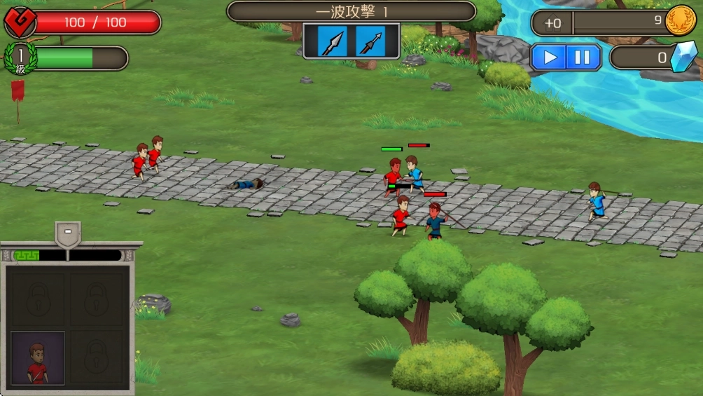 3.消灭敌人进宫后,便可获取大量游戏奖励,通过消耗这些奖励可以提升你的城防防御,并且还能升级你的士兵。
