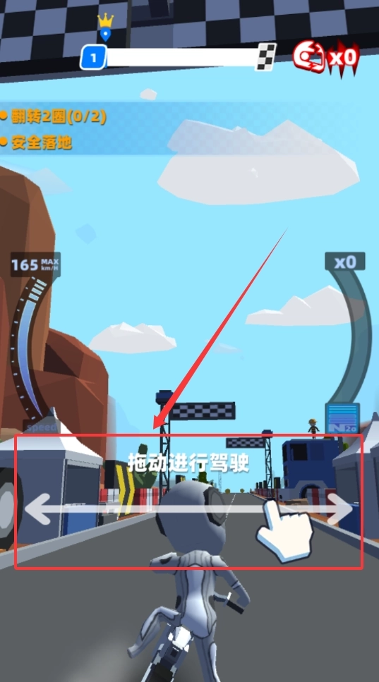 2、通过左右滑动来操控方向,留意赛道上的加速带以实现瞬时提速,同时注意避开路面陷阱保障安全行驶,从而完成初级关卡的挑战。