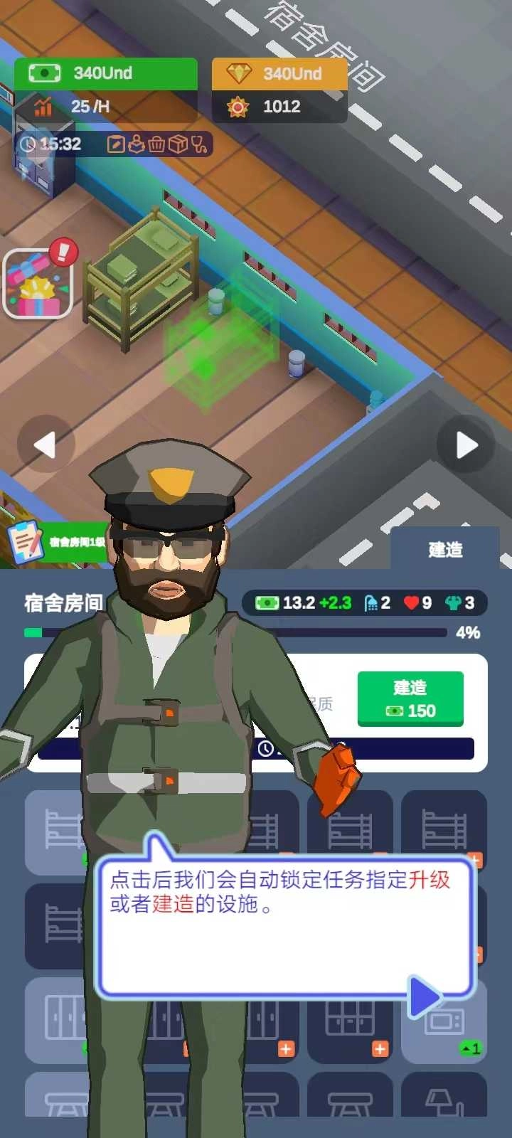 2、随着军事训练的逐步推进,您会得到相当可观的收入,这些收入可用于进一步扩大营地的规模。