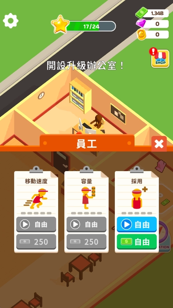 玩家能够利用赚取的金币对角色的“移动速度”与“搬运量”进行升级,与此同时还可以提高员工的工作效率,感受从“亲力亲为”到“甩手掌柜”的转变过程。
