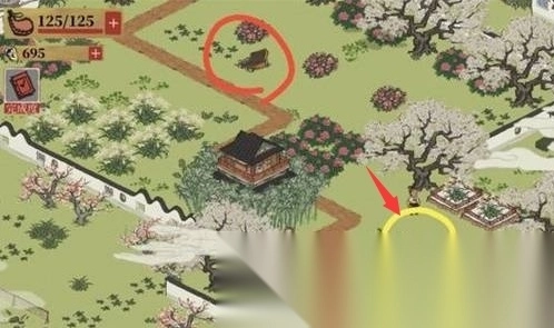 宝箱三位置:需要先铲除地面上的花朵才能获取;