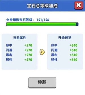 宝石镶嵌总等级由所有装备上镶嵌的宝石等级相加得出,当总等级满足特定要求时,角色的命中、闪避、暴击、韧性这四项基础属性会得到提升,且总等级越高,属性的提升幅度就越大。