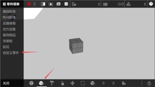 1、这八个方块就是您图纸的初始内容,等您慢慢熟悉游戏后,不妨试试像这样从零开始创作。作为刚接触的新手,我们建议您可以体验“自定义零件”这种更便捷的设计方式。