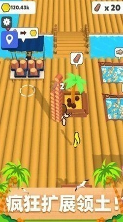 2.玩家开始收集木头,扩展木筏小岛的空间。