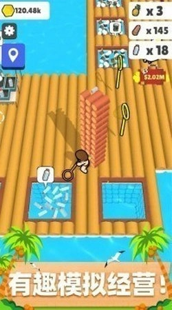 《木筏小岛》是一款模拟经营类游戏。在游戏里,玩家通过收集丰富的钓鱼资源,能够助力自身更高效地建造房屋、升级新的木板空间,进而拓展木筏小岛的范围,打造出全新的小岛环境。