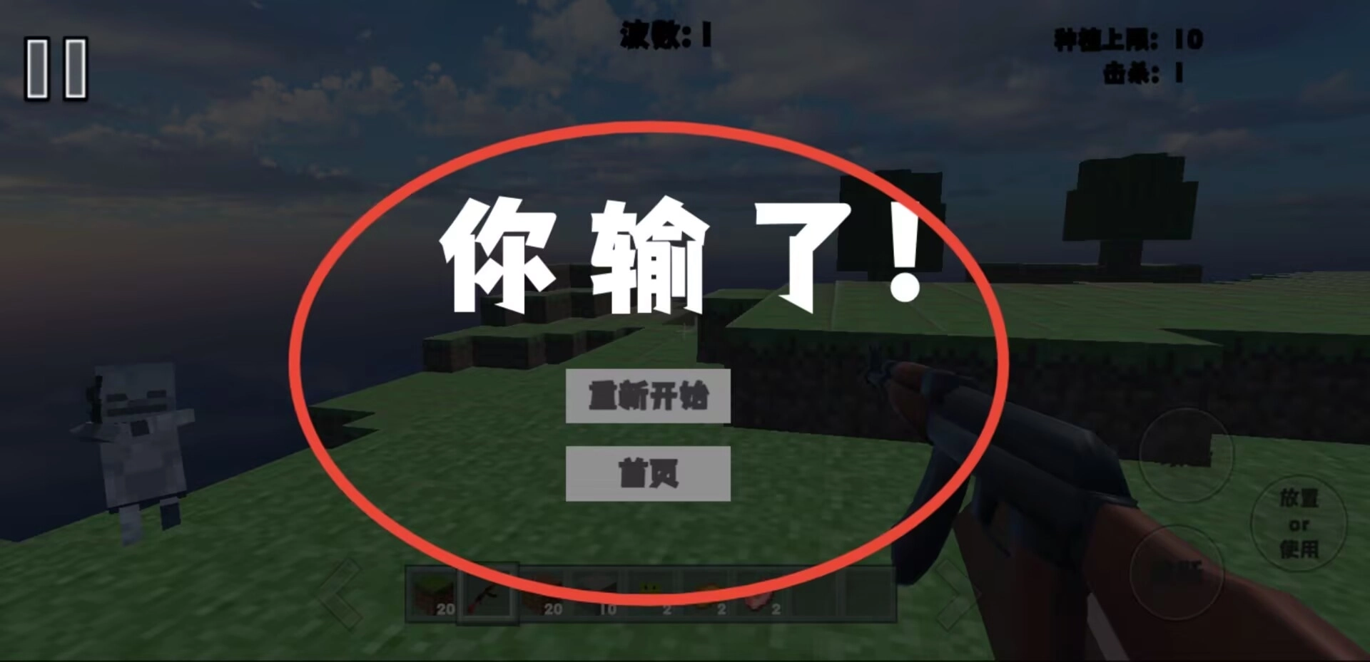 3、每一轮都要消灭规定数量的敌对目标,一旦角色生命值用完,任务就会结束,系统会给出重新挑战或者返回主界面这两个后续操作的选择。