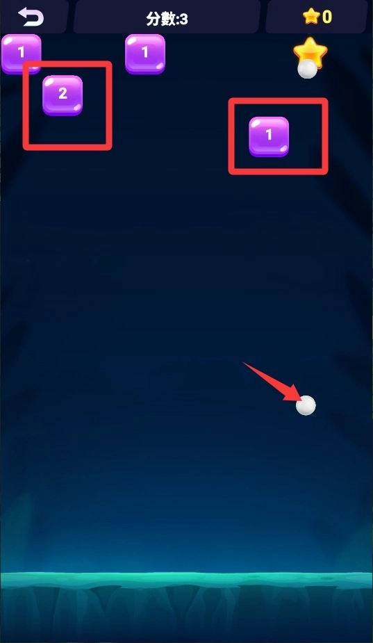 1、游戏开始后点击启动按钮,弹珠就会自动出现在发射台上,这时要留意观察砖块的排列布局,提前判断出最合适的射击角度。