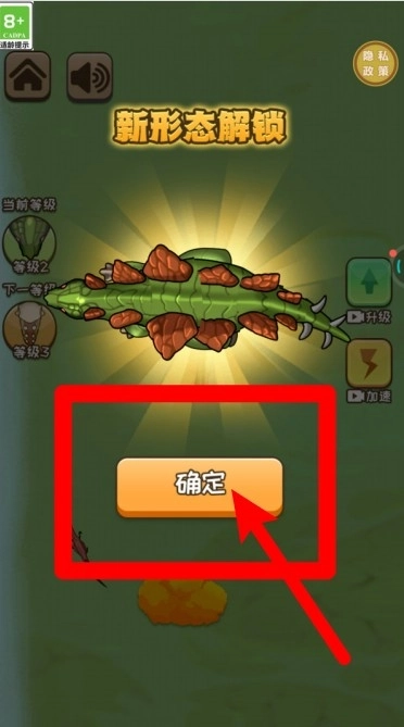 2.完成进化阶段后,新的恐龙形态会自动解锁,点击“确定”按钮就能确认外观的改变并继续进行游戏。