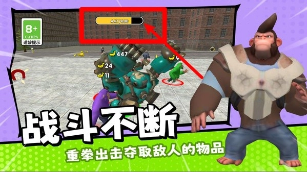 1.吞噬成长机制:运用渐进式吞噬成长系统,玩家通过食用香蕉和各类食物来积攒能量,从而逐步进化为体型硕大、攻击力更为强劲的巨型动物。