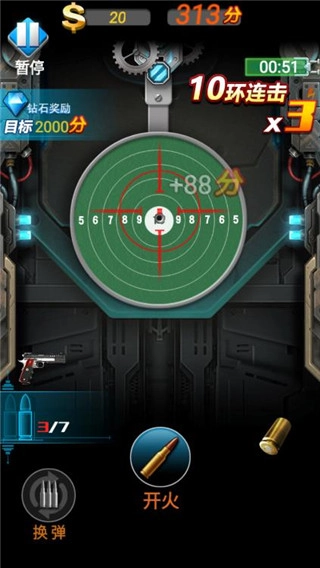 对于游戏中想要获得更高的积分,得先要掌握压枪的技巧,因为每一次射击会导致枪械的上移,所以要下滑后再射击,多打10环,连击之后得分更高。