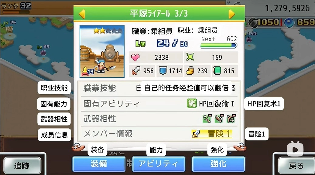 6、战斗布阵: 只有前四排的人物会介入战斗。以是可以思量第一排近战角色主堆血量防御,带满绝对防御当T,后面三排弓/火枪/法杖认真输出、加血和上buff/debuff。听说弓箭手有特效会造成“气绝”(眩晕),在打个体强力怪的时刻可以思量多加些射手。
