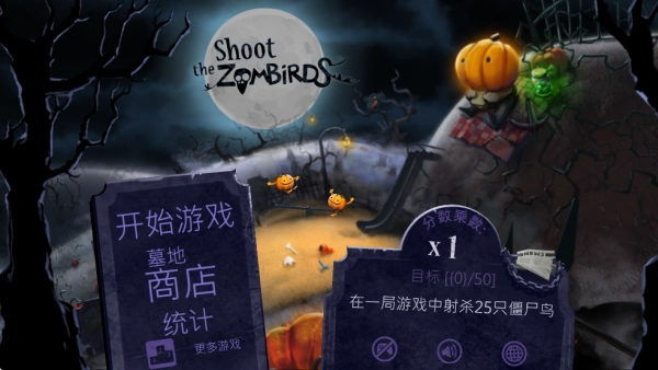 大战僵尸鸟是一款以万圣节为题材的塔防射击游戏。游戏采用西幻风格,画面呈现暗黑色彩,用万圣节这一独特的题材,吸引玩家的兴趣,特别是搭配画面的音乐特别恰当,给了玩家强烈的视听效果。在游戏中玩家要扮演一位保护南瓜田的稻草人,所守护的南瓜田被一群邪恶的僵尸乌鸦惦记上了,为了守护自己的南瓜,玩家需要通过自己的弓箭射下前来进攻的僵尸鸟,以此守护自己的南瓜们。