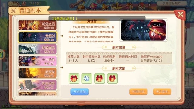 鬼怪村副本的参与条件为等级达到28级,支持单人挑战或组队协作。每日前三次成功通关可获得奖励,后续挑战将不再有奖励;副本限时20分钟。副本奖励包含:1级拼图箱,开启后可随机获得一个1级拼图和1个低级宠物药;鬼怪奖励箱,有机会随机获得银币、金币、鱼饵、药水、苏生药剂、宝石或魂晶;魂核随机箱,能随机开出1颗魂石或1枚阵营水晶。