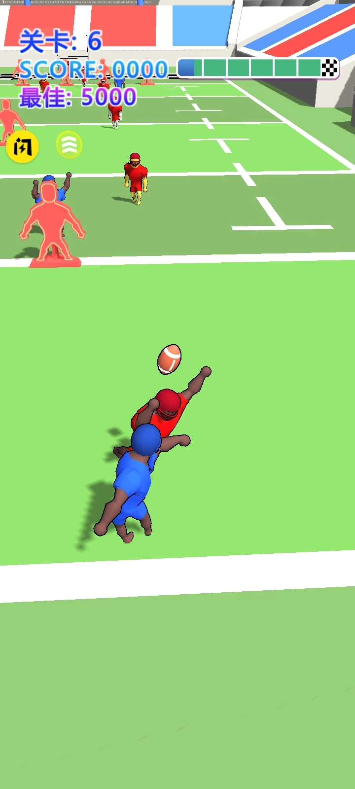 3、促使你的对手为胜利清除障碍,完成传球、接球并全力奔跑以争取胜利,进而收获触地得分的荣耀。
