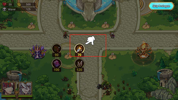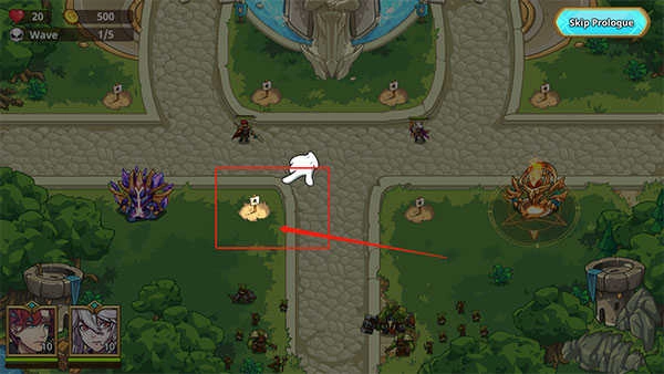 1、进入关卡后,道路旁会有空地,玩家点击空地就能修建防御塔;