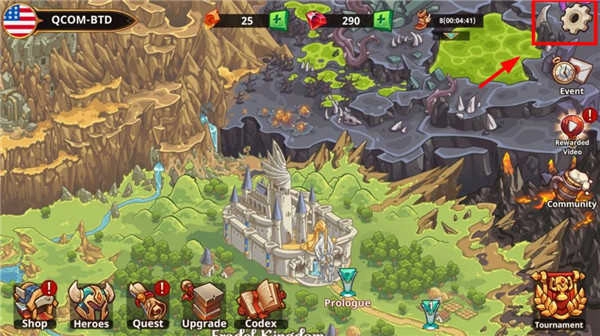 1、请安装本站提供的《战国争霸2》最新版本,打开游戏后点击右上角的设置按钮。