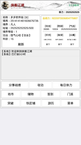 《侠客江湖》是一款以古典武侠世界为背景的角色扮演游戏。玩家将化身初入江湖的侠士,在山河壮阔的东方地图中闯荡历练,习得百家武学、结交江湖豪杰、参与门派纷争,体验快意恩仇的沉浸式武侠人生。