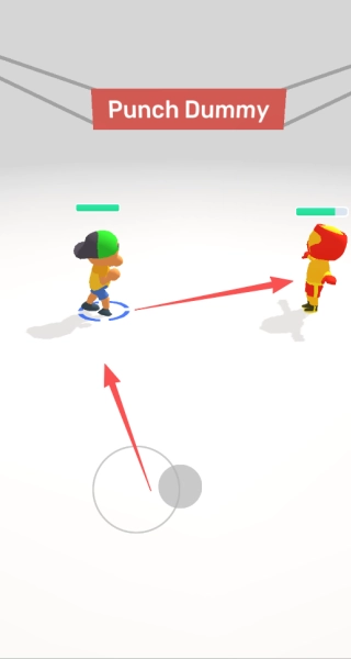 2、进入竞技场后,可通过滑动屏幕操控布娃娃移动,点击按键即可触发挥拳、踢腿、抓取等动作,目标是将对手摔出场地。