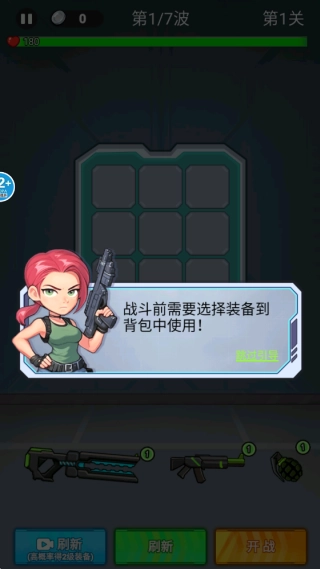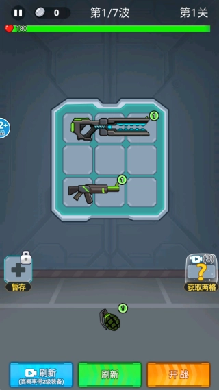 2.战斗开启前,玩家需把武器放置到屏幕中央的格子里。相同的武器能够通过合成来提升等级。