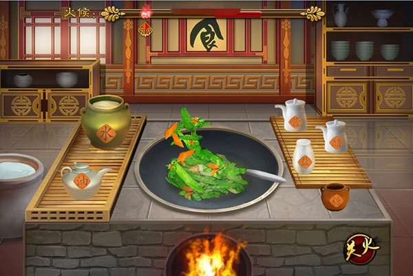 2、当解锁的菜肴所需食材充足时,点击菜谱界面的“亲自下厨”按钮,就能进入该菜肴对应的炒菜界面。
