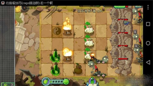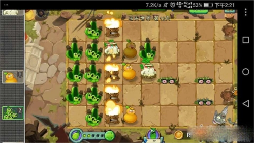 2.完成第一步后,就可以着手考虑其他行的防御安排了。其他行刚开始时放置一个豌豆射手即可,不过其中有一行建议选择卷芯菜,这样能确保群体攻击的效果更给力。