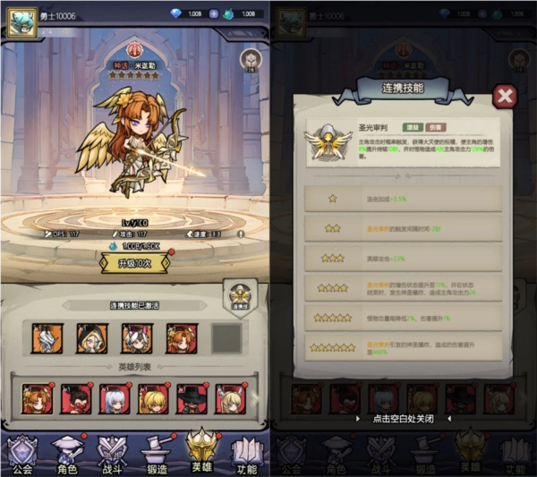 每解锁一位英雄,都能助力你的战斗;若集齐一组拥有连携关系的英雄,更能额外激活华丽的连携技能,为你带来显著的战力提升。